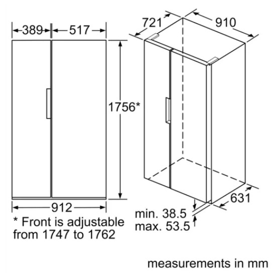 Series 4 American side by side 175.6 x 91.2 cm Stainless steel (with anti-fingerprint)