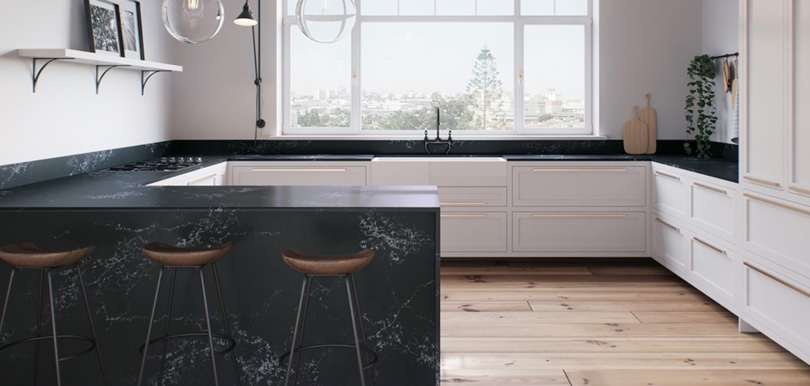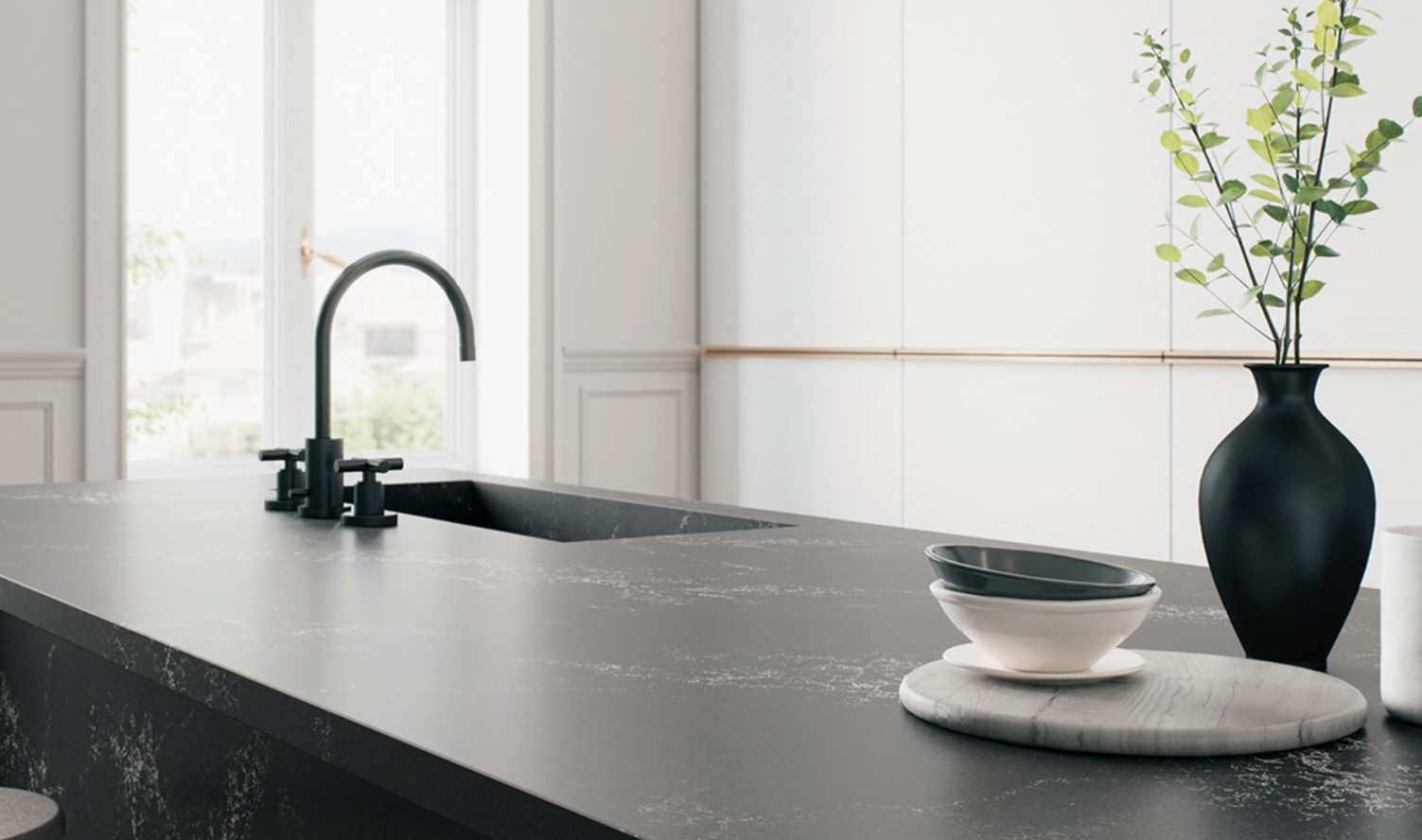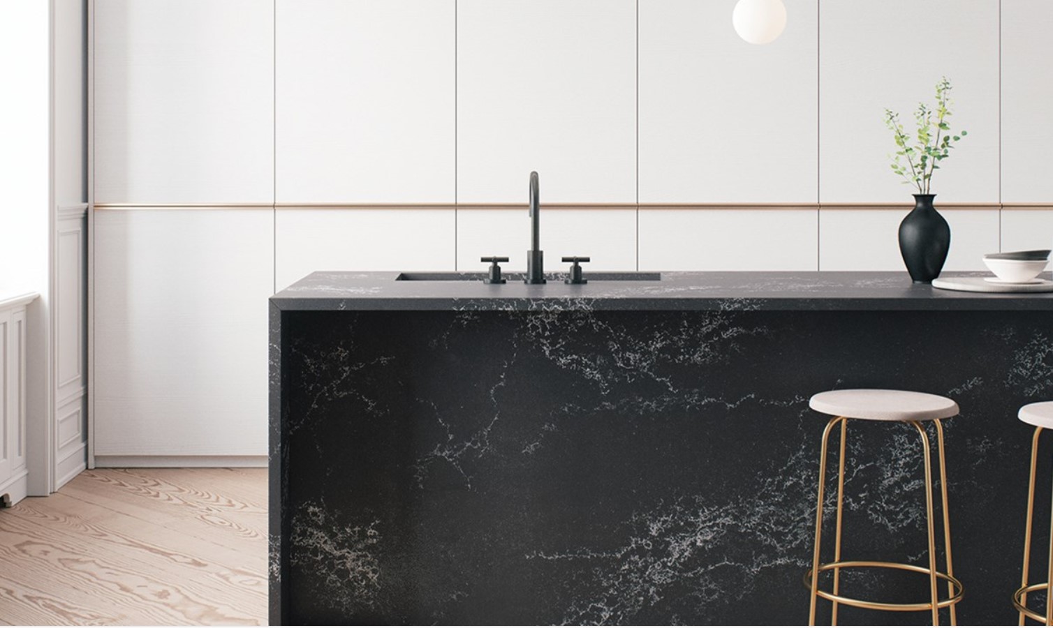 Whether as a contrasting island silhouette or used all-over for an utterly stunning look, this memorable surface combines well with other high-end finishes, such as classic hardware, black lacquered cabinets or dark woods like walnut. This creative interpretation of natural stone brings sophisticated, timeless classic qualities to any interior.